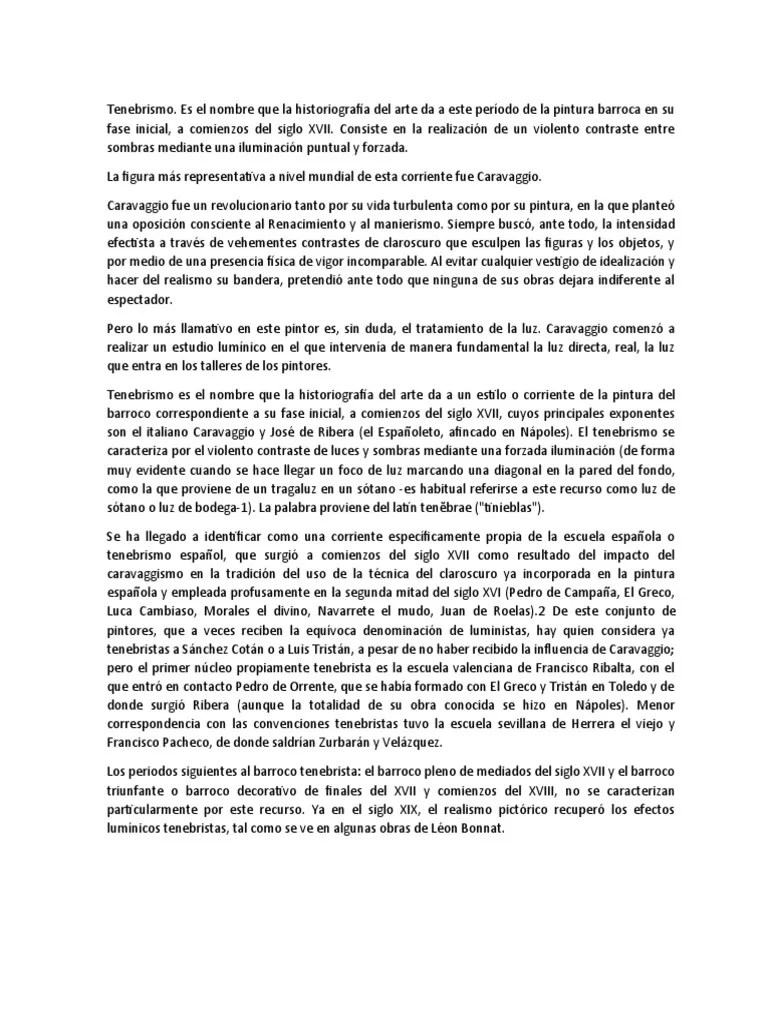 Movimientos pictóricos tenebrismo ,barroco, realismo ,futurismo ,expresionismo ,dadaísmo,artes de españa portal de arte en internet. El tenebrismo, así como es un estilo pictórico, es también una corriente interesada en ciertos temas y con una forma particular de trabajarlos. Se ha hablado de luz de sótano y luz de bodega en referencia a este modo de iluminación caravaggiesca que tanta influencia ejercería en el barroco. El arte de caravaggio supuso un punto de inflexión en la pintura italiana del momento. 24.09.2014 · tenebrismo es el nombre que la historiografía del arte da a un estilo o corriente de la piintura del barroco correspondiente a su fase inicial, a comienzos del siglo xvii, cuyo principales exponentes son el italiano caravaggio y jose de ribera (el españoleto, afincado en nápoles).. Las atmósferas de luz y tiniebla envuelven escenarios muy realistas.